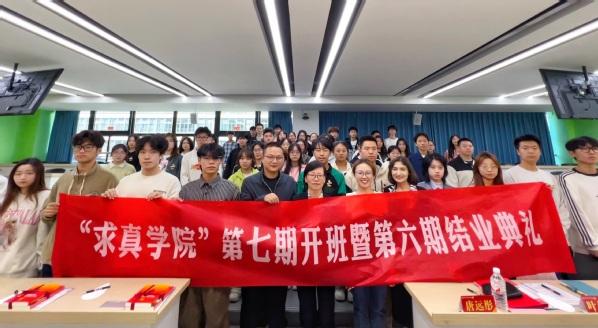 为落实新时代青年马克思主义者培养工程,培养中国特色社会主义事业合格建设者和可靠接班人,米兰官网积极响应团中央号召,于2018年开始,依托“求真学院”开展“青马工程”骨干培养计划,坚持“用信仰点亮人生,用真理引领未来”为理念培养学生骨干。11月6日下午,“求真学院”第七期开班仪式暨第六期结业典礼在南浔校区顺利举行,校党委副书记唐远彤出席并讲话。校团委老师彭秋伟、叶晨露,第六期10位优秀学员代表及第七期60位新学员参加本次活动。