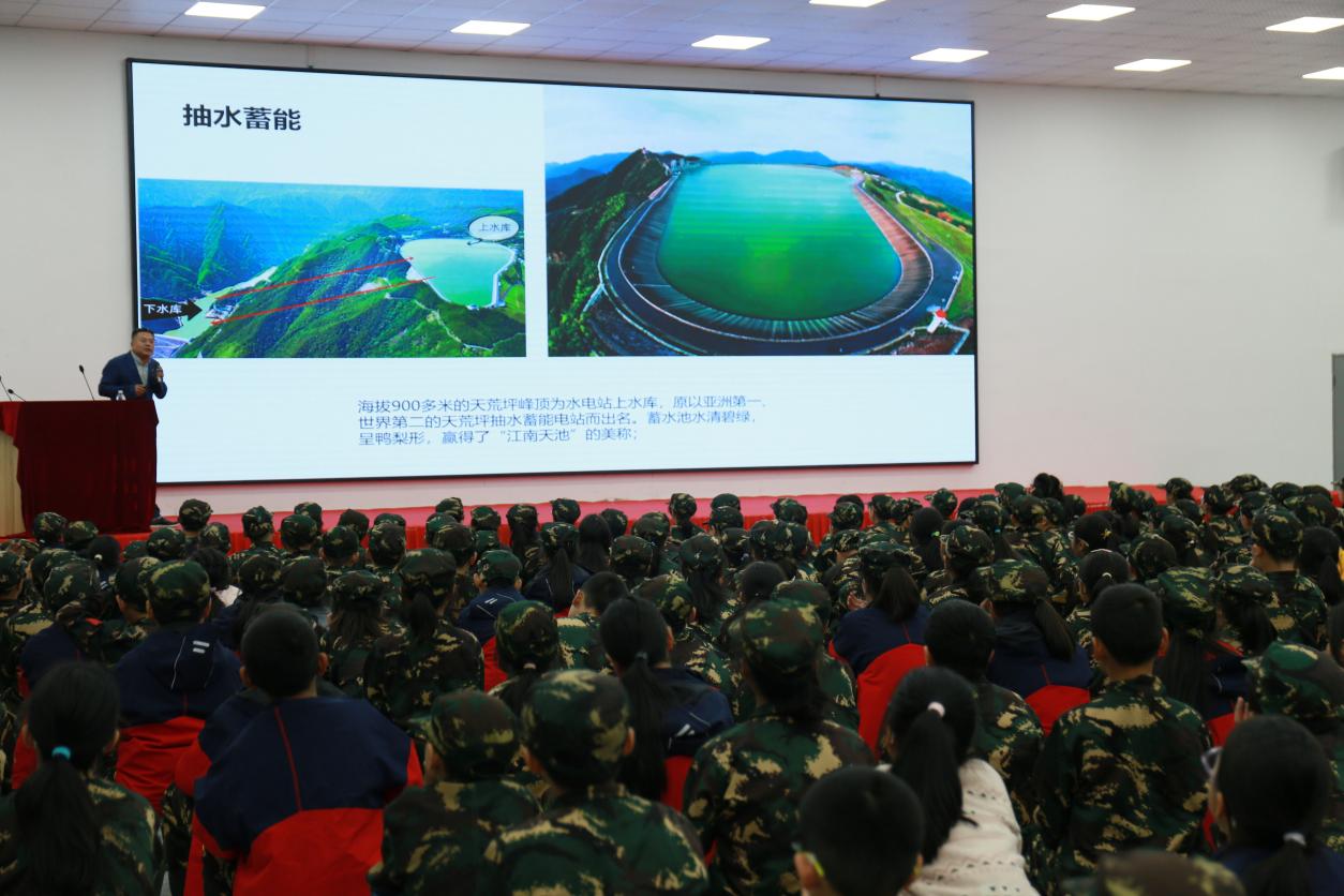 李明范老师以“江南天池”抽水蓄能电站为切入点,围绕储能技术展开生动讲解,通过动画演示与工程实景照片,详细介绍了各类储能技术的特点、应用场景及经典案例,让学生们在趣味讲解中了解储能的科学原理及其在绿色能源中的重要性,激发他们对科技的兴趣和探索精神。