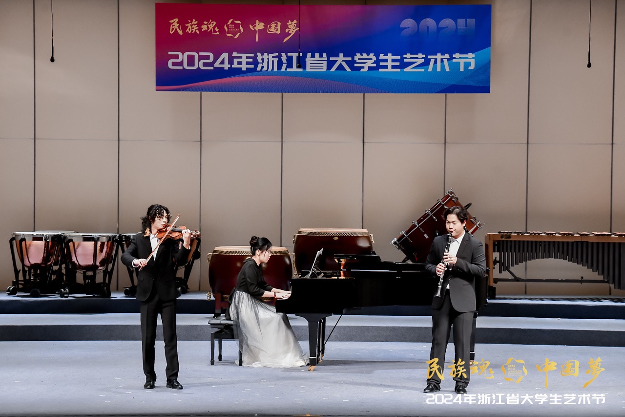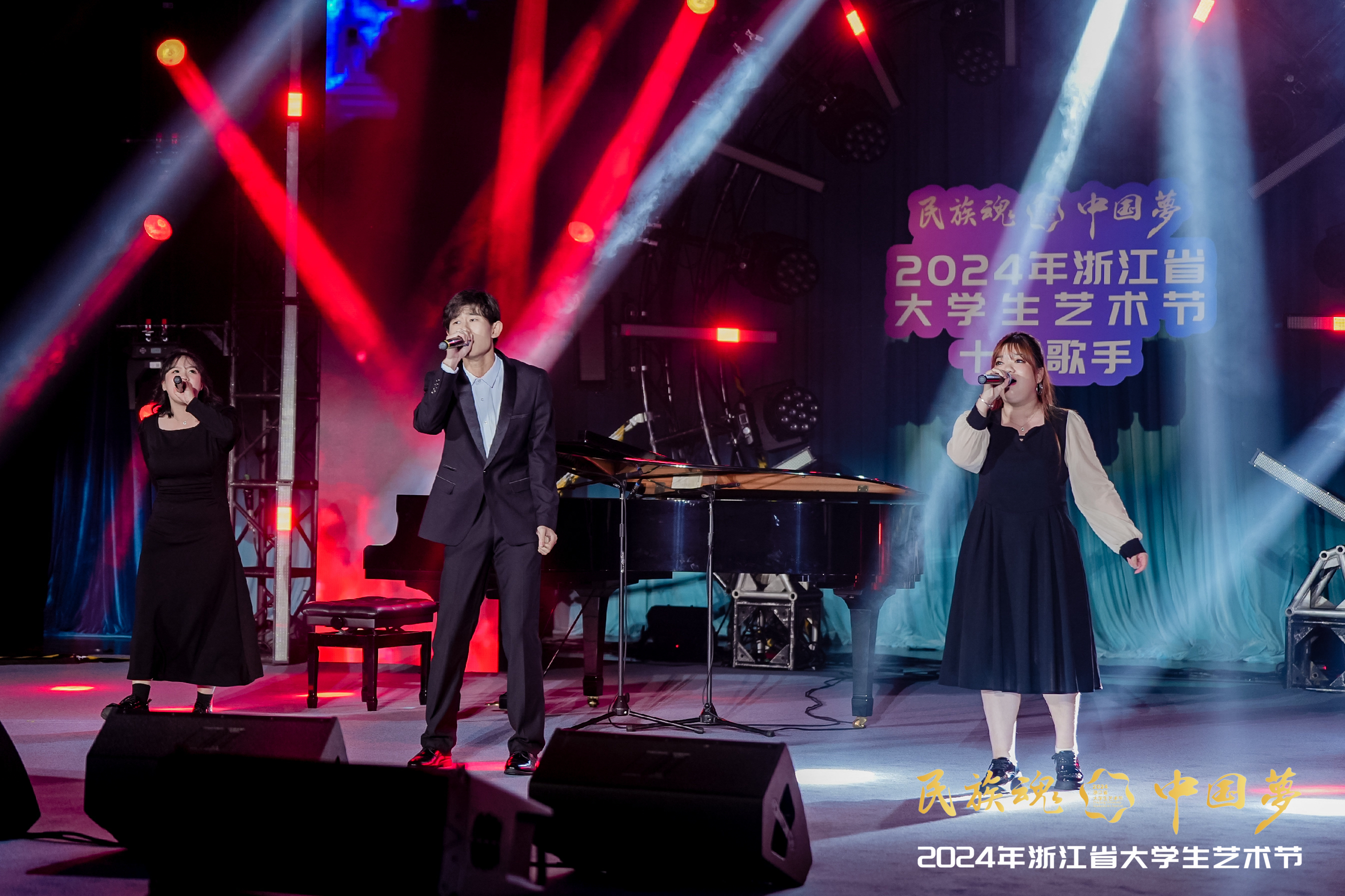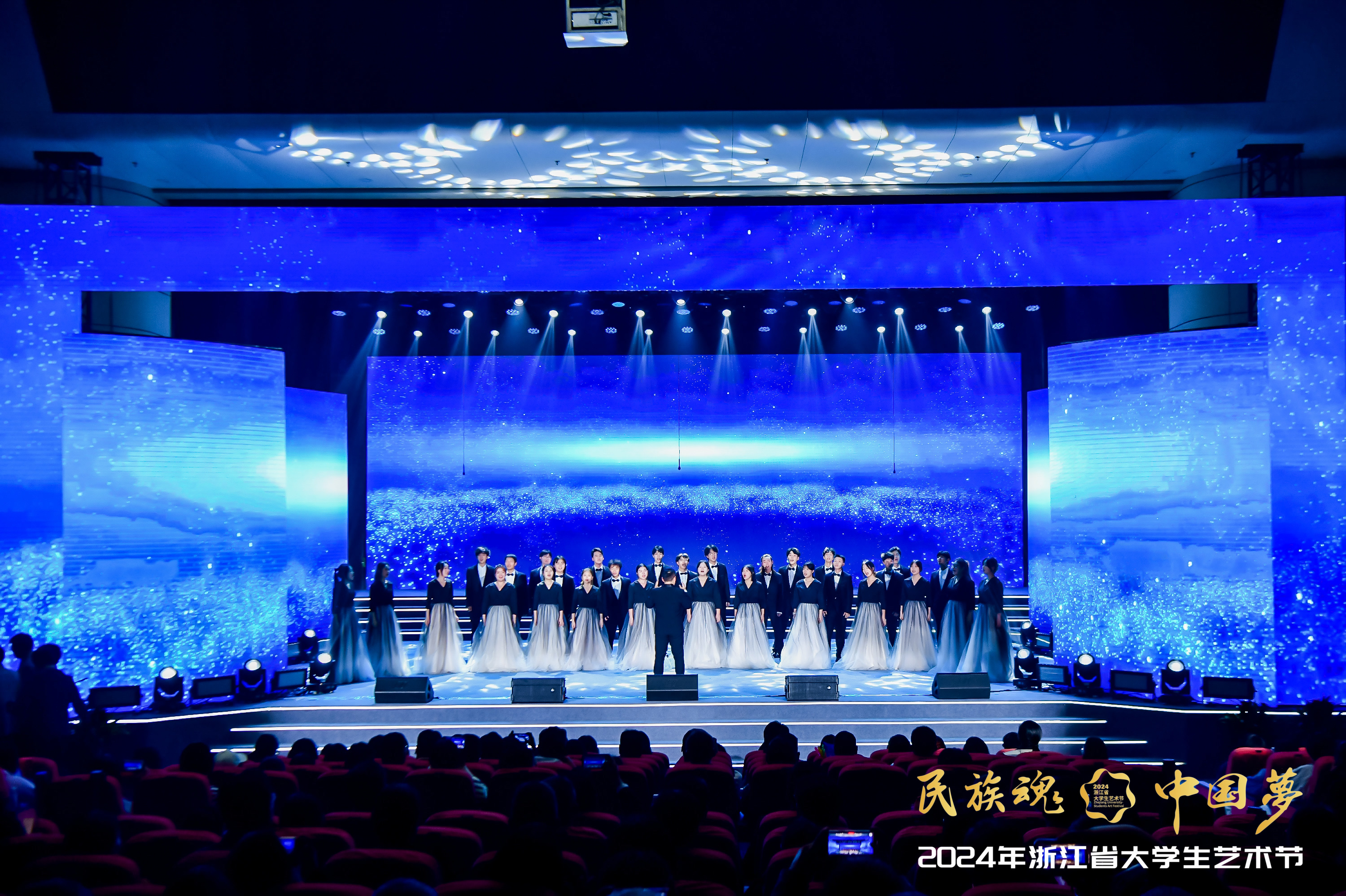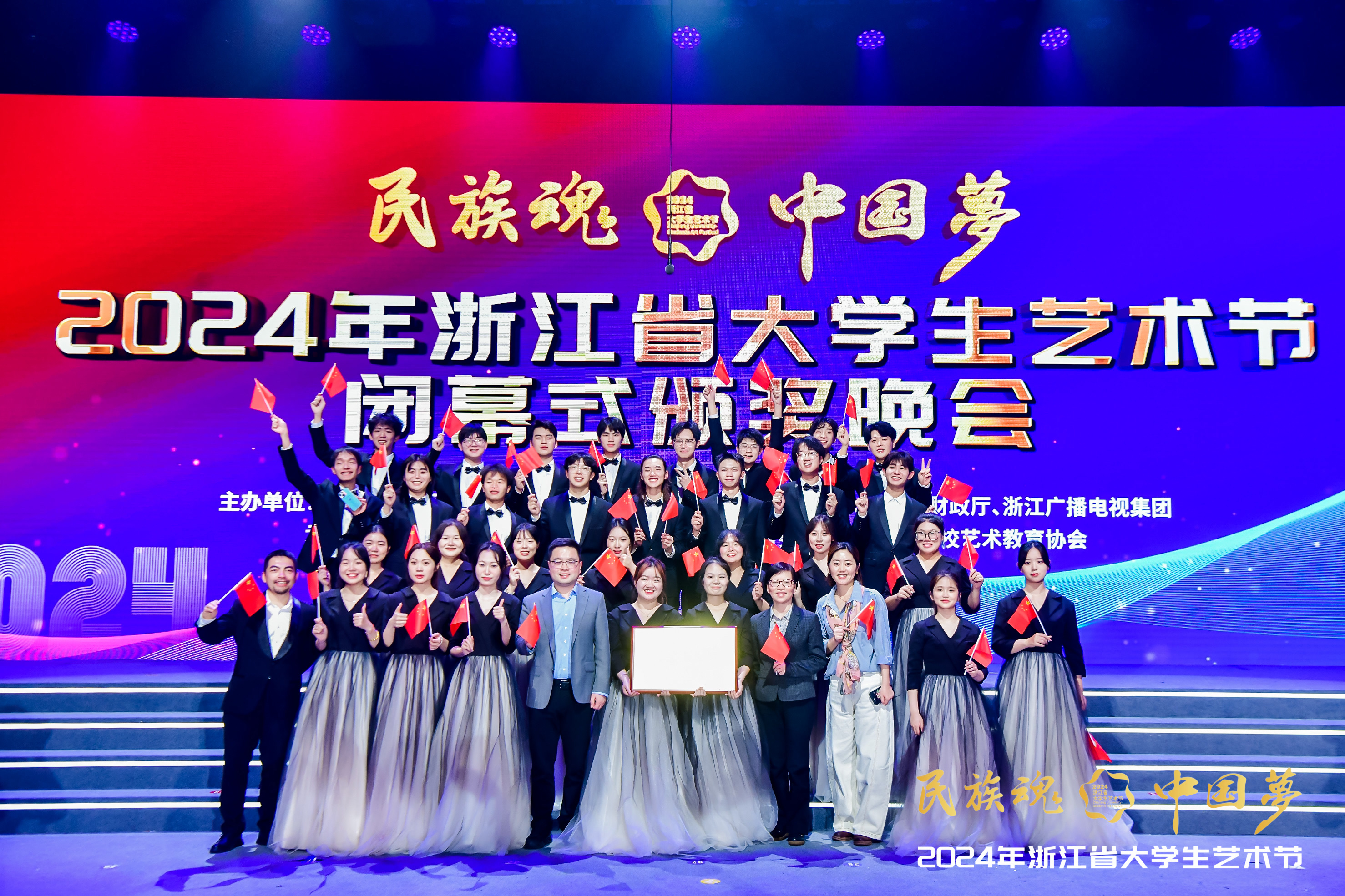 近日,由省教育厅、省文旅厅、团省委、省财政厅、省广电集团共同主办的2024年浙江省大学生艺术节圆满落幕。本次省大艺节以“民族魂•中国梦”为主题,共收到来自全省100所高校选送的器乐、声乐及十佳歌手作品653个,其中167个作品入围现场展演。米兰官网共选送8个作品参赛,其中4个作品入围现场展演并有1个作品参加闭幕式晚会现场演出,共获一等奖3项、二等奖2项、校园十佳歌手大赛优秀歌手奖1项,学校荣获“优秀组织奖”。校党委副书记唐远彤作为嘉宾出席闭幕式颁奖晚会并和参赛师生代表合影留念。
