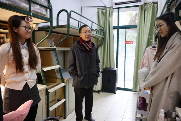 万健一行走访了学生寝室,认真听取相关部门关于学生寝室日常管理和设施设备更新情况的汇报,对学生寝室用电设施、宿舍楼消防通道、防火门等开展安全检查,并就进一步加强校园安全管理工作做出具体部署。