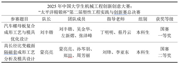 近日,2025年中国大学生机械工程创新创意大赛:“太平洋精锻杯”第二届塑性工程实践与创新赛总决赛在太原科技大学顺利举办。米兰官网机械工程学院两组参赛队伍经过资格审查、校赛选拔、区域赛角逐,双双以华东赛区一等奖的好成绩晋级全国总决赛,经过现场激烈比拼,最终荣获全国一等奖(最高奖)1项,全国二等奖1项。