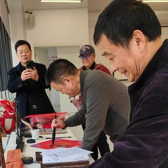 午后,活动迎来高潮——“新春送福”写对联。现场墨香四溢,擅长书法的退休老教师与书画社成员一同铺纸研墨、挥毫泼墨。笔走龙蛇间,一副副承载吉祥寓意、饱含新年期许的春联与“福”字跃然纸上。墨香与欢笑交织,传统韵味与校园温情相融,勾勒出一幅和谐美好的动人画卷。
